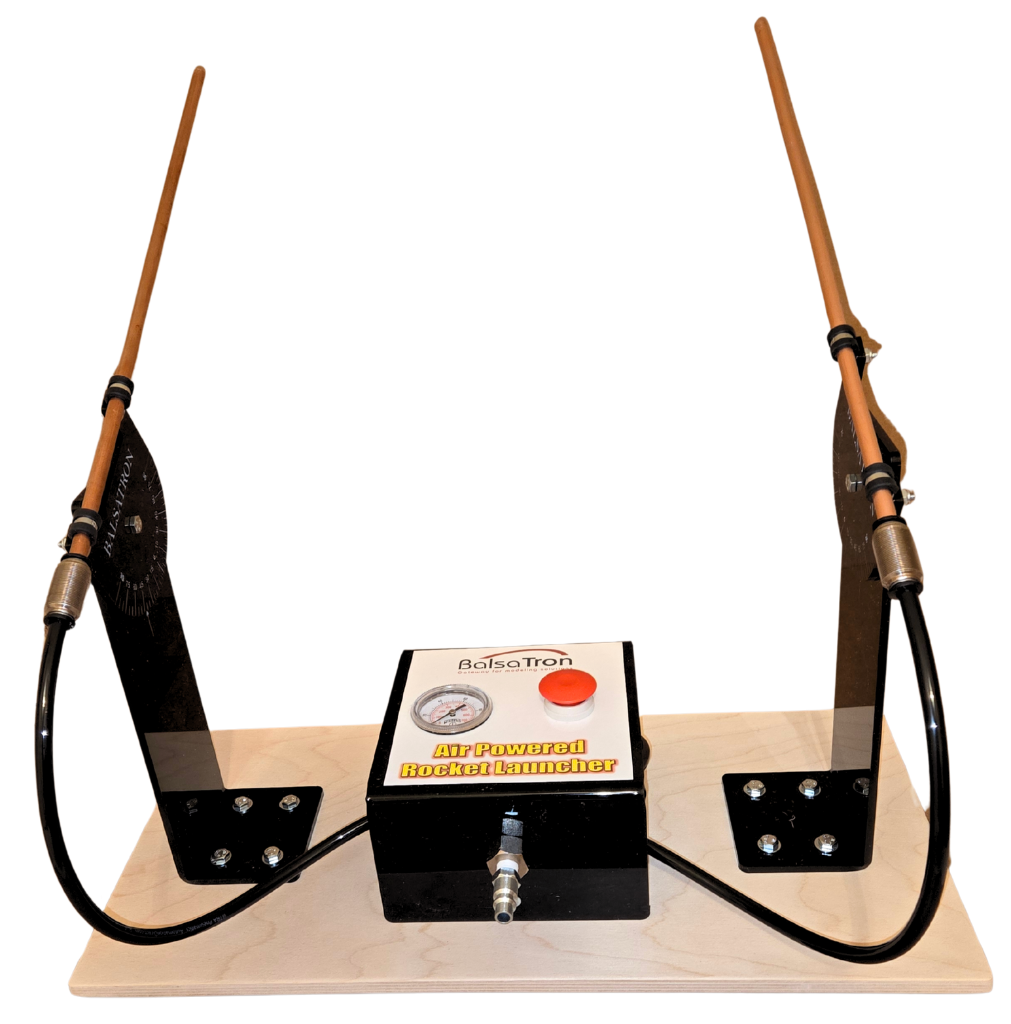 Powered By AirTM , Design and build Paper and Straw Rockets and launch them with BalsaTron's Air Powered Launcher. It will Eliminate the need for rocket engines. Provides adjustable launch angle and air pressure gauge. Students experiment with different fin design and launching angles to achieve longest distance traveled. * Requires an Air Compressor*