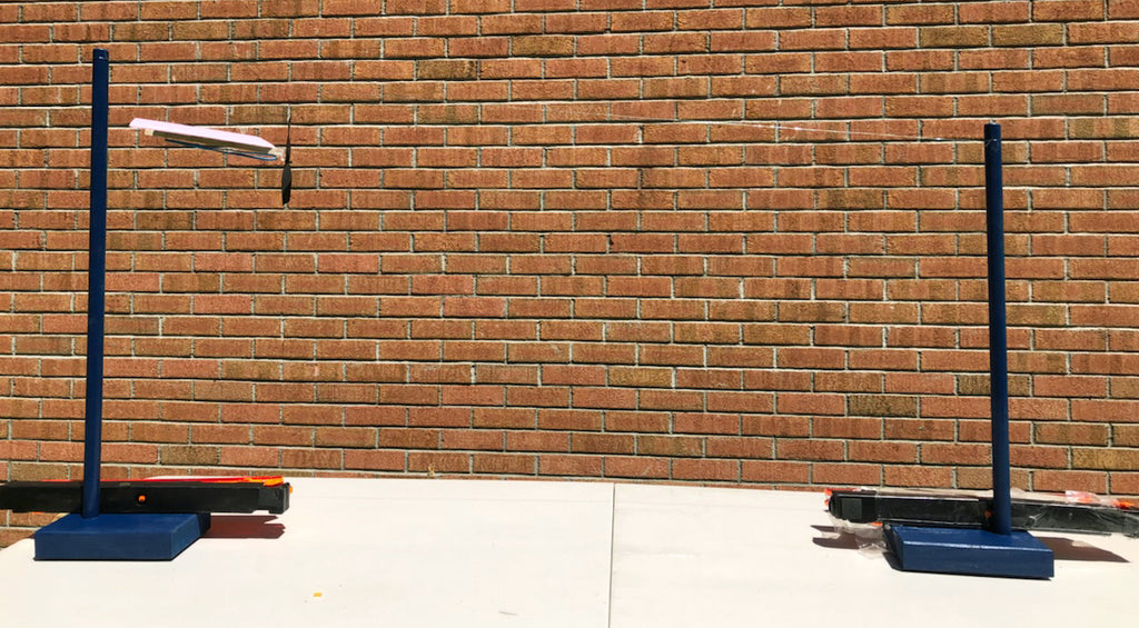 Students design and build a rubber band powered Zip-Line Flyer to explore forces on the flyer: Thrust, Drag, Gravity, and Lift.